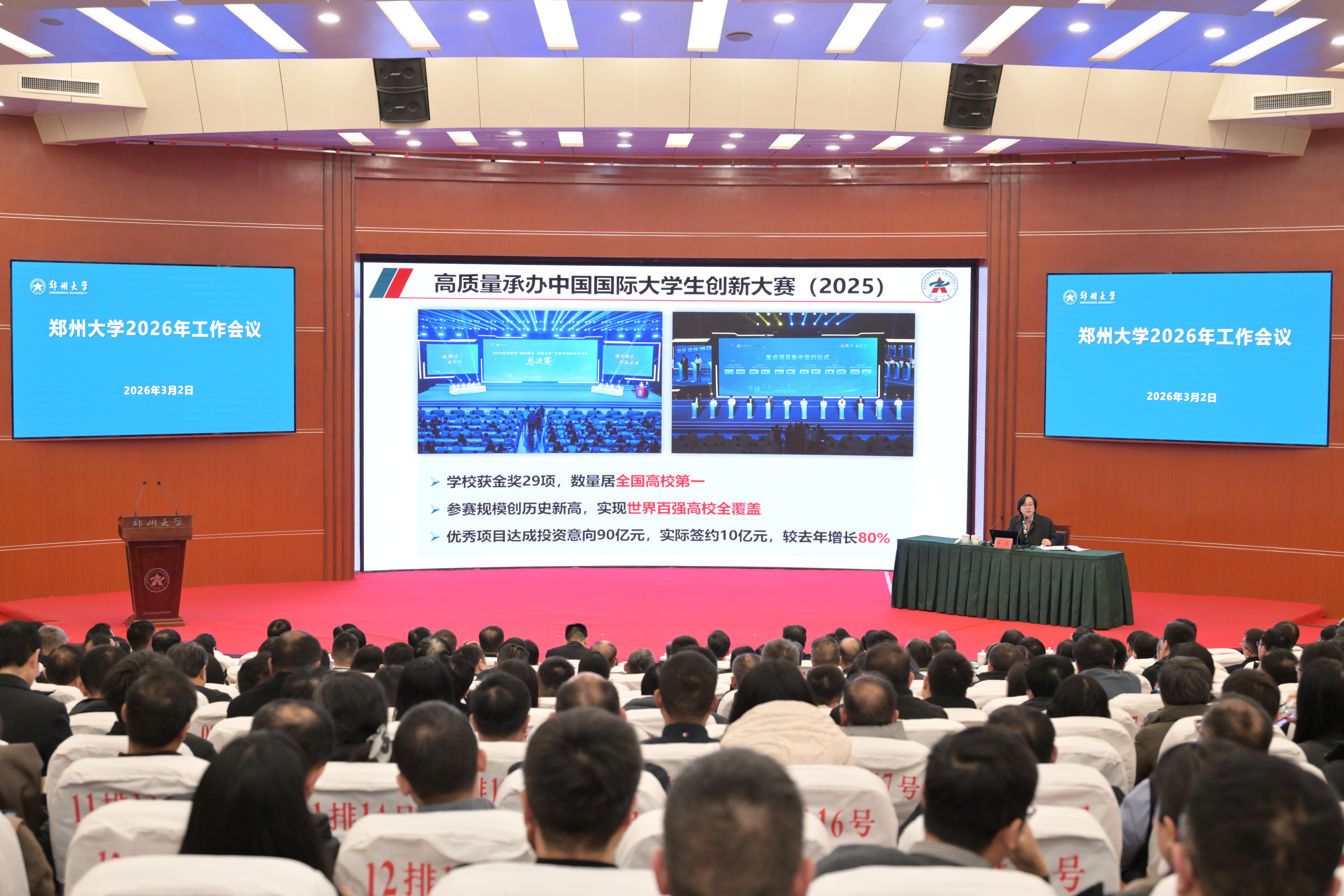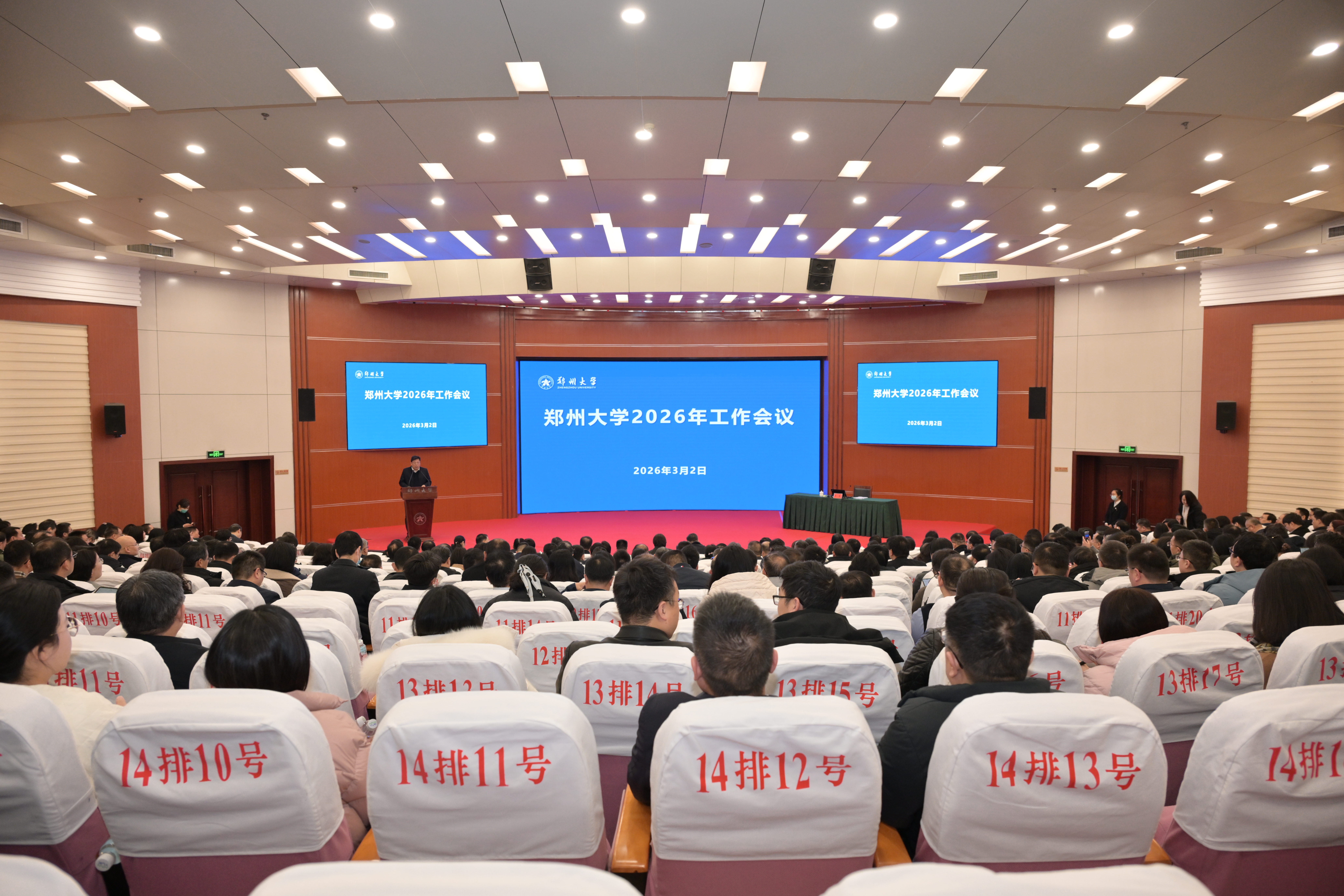 校党委书记李成伟在讲话中指出,2026年是“十五五”开局之年,是加快教育强国建设三年行动计划承上启下的关键之年,开局之年当有开局之势、奋进之姿、关键之为,要从全球竞争格局、教育职责使命、区域发展需求、社会环境结构等四个方面,深刻把握高等教育面临的内外形势,跳出教育看教育、立足全局看教育、放眼长远看教育,准确识变、主动求变、积极应变。他强调,要突出重点,围绕升级定位理念、明晰目标思路、提升治理效能、聚力实现突破,高质量编制“十五五”发展规划,集全校之力、以超常规举措,迎战“双一流”二期验收,把握政策机遇、谋划第三轮“双一流”建设,以入选高等教育综合改革试点为契机,系统推进育人模式、学科体系、科研机制、人事制度、评价机制、资源配置、内部治理等重点领域改革,激活内涵式发展动力,优化创新生态系统,构建“一城、一圈、一区、一港、一网、一赋能”协调联动、开放融合格局,以发展方式变革推动办学质量跃升。他强调,坚持党建强则事业兴,夯实党建基础,统筹推进党的政治建设、思想建设、组织建设、作风建设、纪律建设、制度建设,健全党建引领高质量发展、高效能治理、高水平安全的体系和机制,纵深推进全面从严治党,营造良好政治生态和发展环境,突出“齐、高、实、细、快、新”六字要求,以钉钉子精神抓好各项工作落实,切实把党的政治优势、组织优势转化为一流大学建设的实际成效。他要求,全校上下要解放思想、开放融合,上下同欲、勇毅前行,开足马力、奋进开局,推动一流大学建设提质晋位,为奋力谱写中原大地推进中国式现代化新篇章作出新的更大贡献。