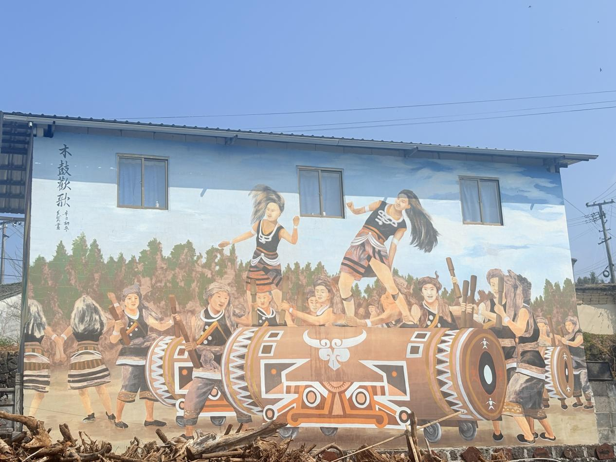 村寨壁画:木鼓欢歌
