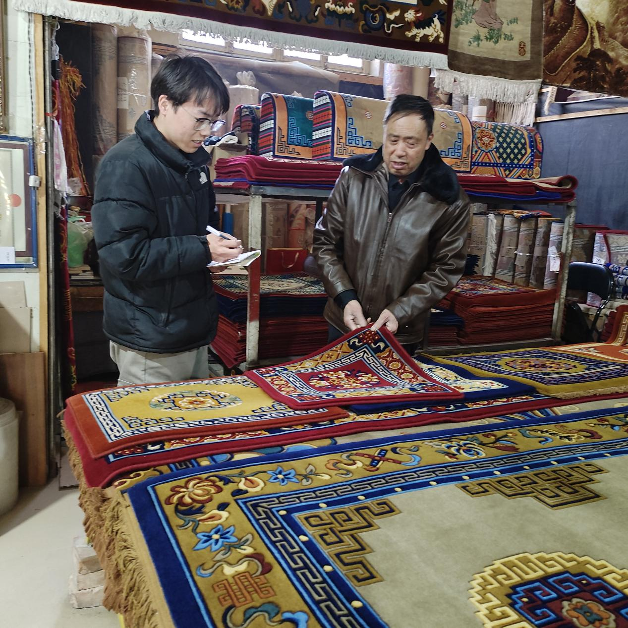 海生金同学调研了解当地的藏毯销售情况