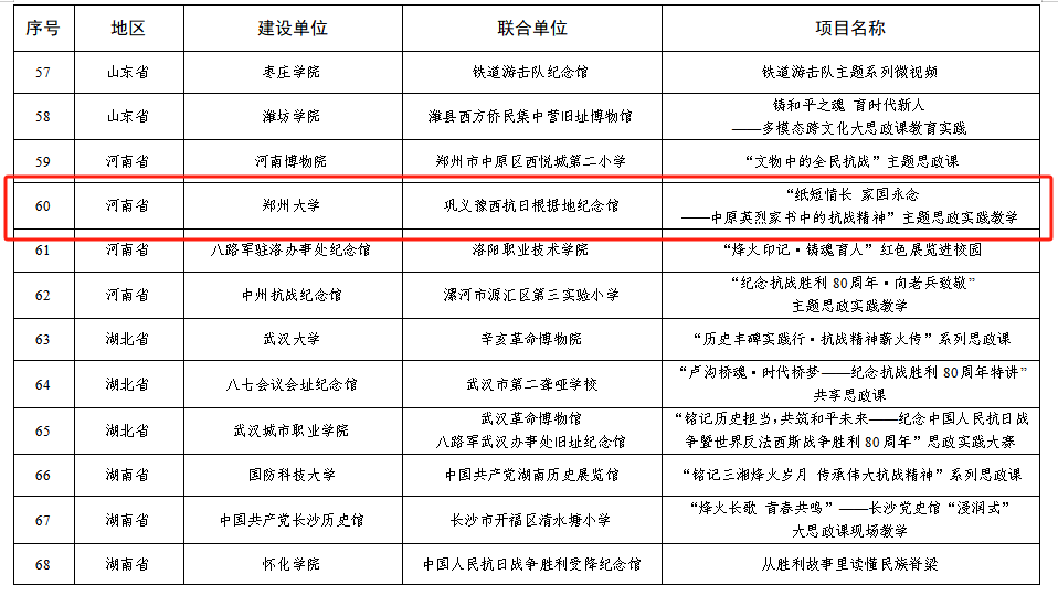 近日,教育部、国家文物局公布以中国人民抗日战争暨世界反法西斯战争胜利80周年为主题的大中小学“大思政课”优质资源建设推介项目名单,best365英国在线体育官网联合巩义豫西抗日根据地纪念馆申报的“‘纸短情长 家国永念——中原英烈家书中的抗战精神’主题思政实践教学”获批精品项目,该项目也是我省本科高校唯一入选的推介项目。