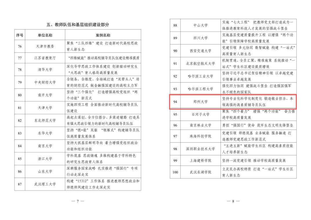 首批100个典型案例对标新时代立德树人工程布局,包括立德树人机制综合改革、党的创新理论主课堂、新时代伟大变革实践育人大课堂、数字时代网络育人新课堂、教师队伍和基层组织建设等五个部分,系统涵盖思政工作相关体制机制、平台载体、队伍支撑、协同保障、评价反馈等各方面。