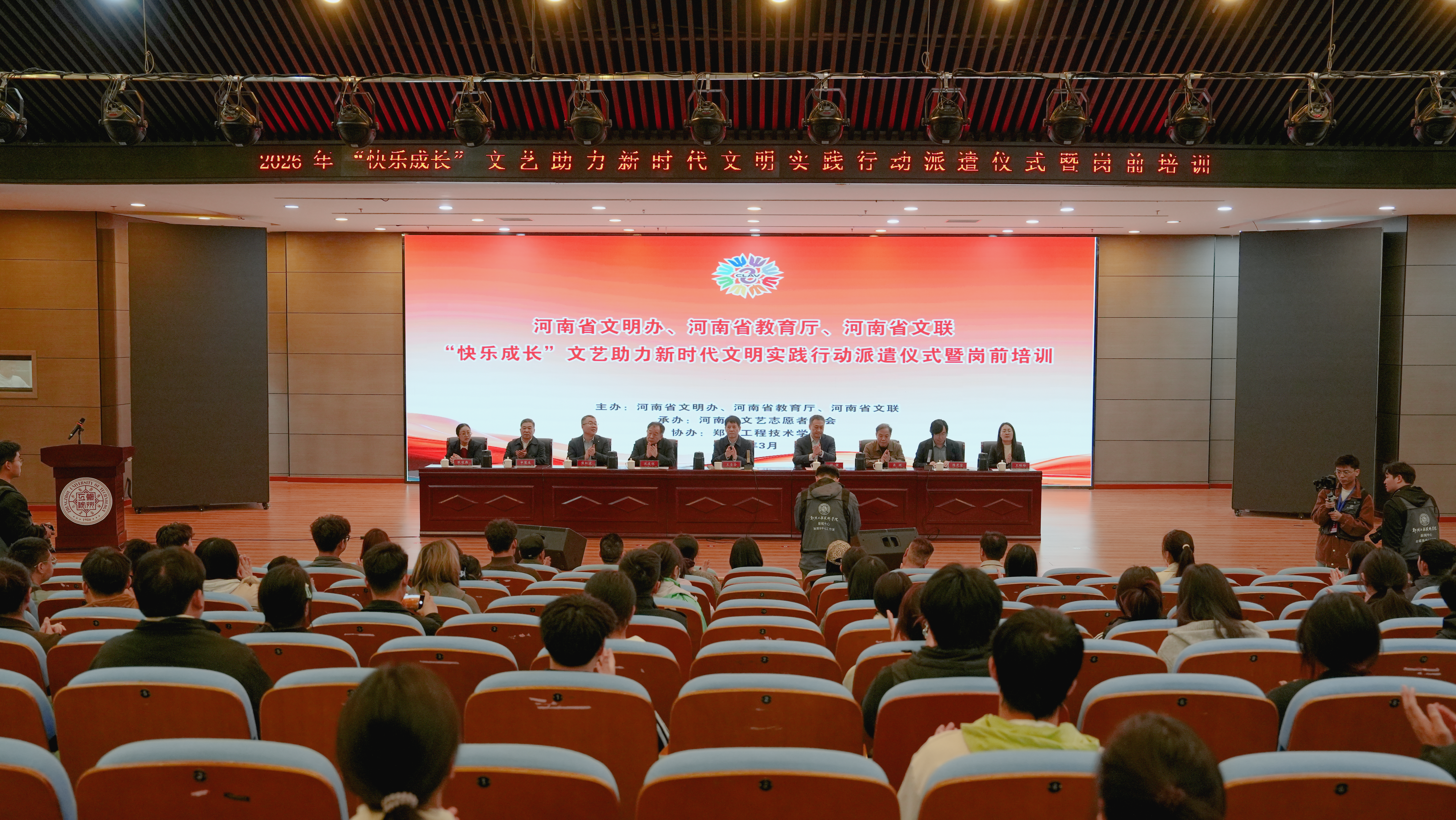 为深入学习贯彻习近平文化思想,全面落实教育部关于全面实施学校美育浸润行动的工作要求,持续推动“五育融合”提质增效,丰富新时代文明实践活动内涵,3月26日,由河南省文明办、河南省教育厅、河南省文联主办的2026年上半年“快乐成长”文艺助力新时代文明实践行动派遣仪式暨岗前培训在郑州举行。best365英国在线体育官网党委宣传部相关负责同志以及来自运动与体育学院、河南音乐学院、美术学院、书法学院的9名志愿者参加仪式,志愿者将前往开封、鹤壁等地进行为期三个月的文艺支教。