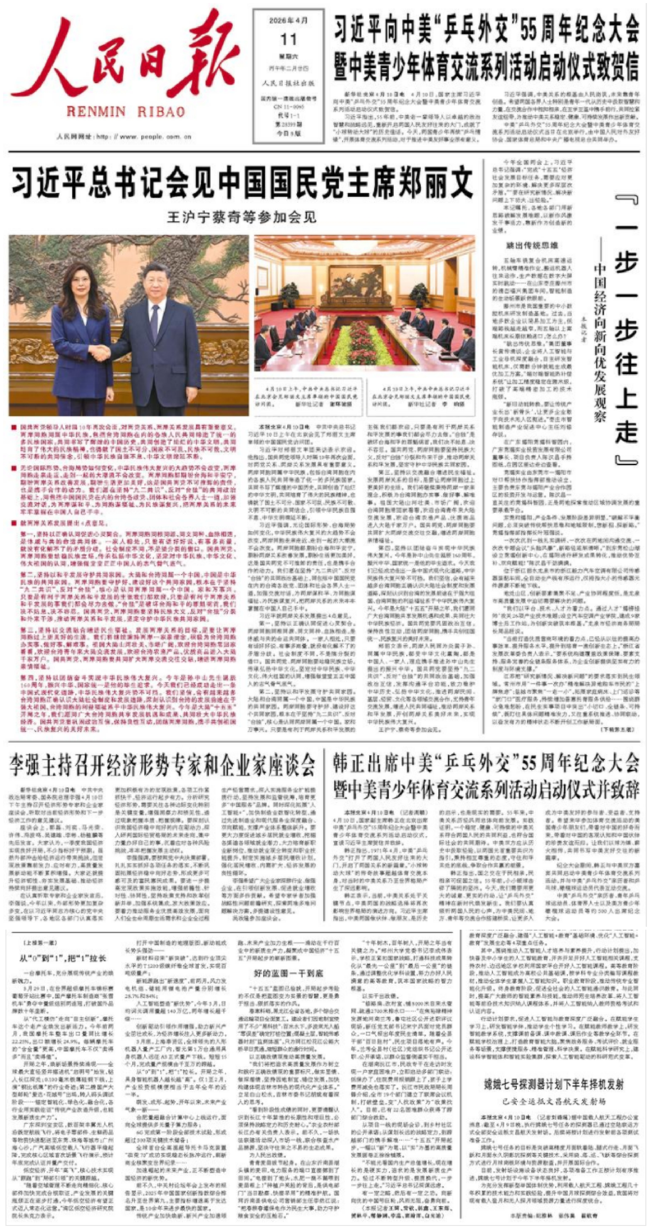 《人民日报》2026年4月11日头版文章《“一步一步往上走”——中国经济向新向优发展观察》中报道best365英国在线体育官网党委书记李成伟观点: