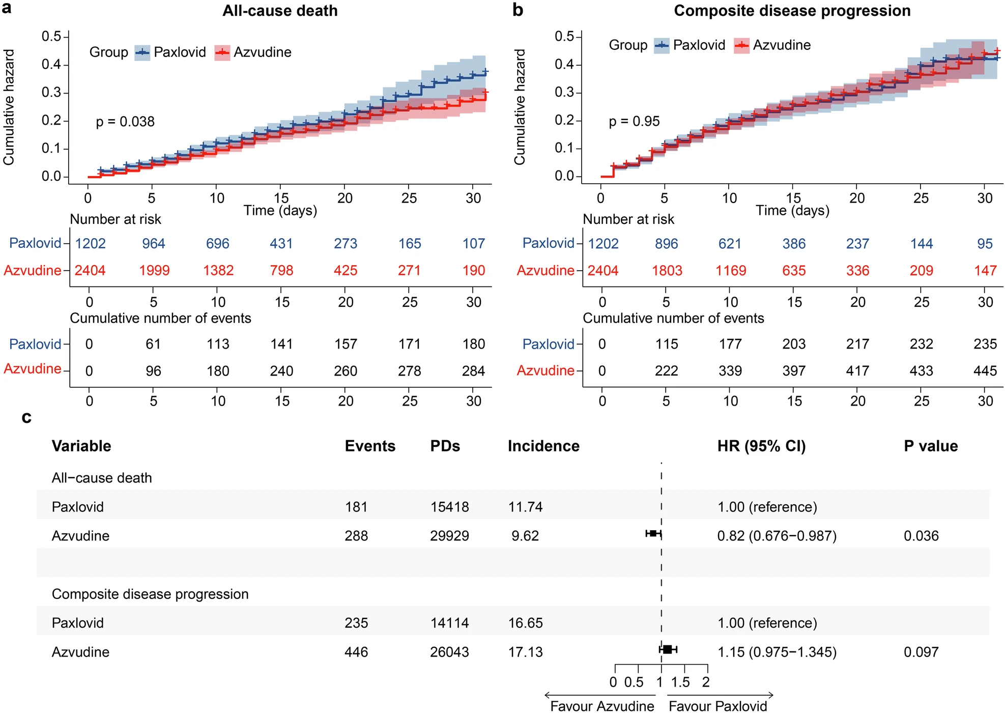 以“Real-world effectiveness and safety of oral azvudine versus nirmatrelvir‒ritonavir (Paxlovid) in hospitalized patients with COVID-19: a multicenter, retrospective, cohort study”为题的研究成果发表在Nature旗下顶尖期刊《Signal Transduction and Targeted Therapy》上。文章指出,奈玛特韦/利托那韦(Paxlovid)作为国际公认的新冠治疗药物,已在多项临床试验和真实世界研究中证实疗效,尤其是在降低住院率和死亡率方面表现突出。而Paxlovid的高成本、药物相互作用(如与CYP3A代谢药物的冲突)以及部分患者的不耐受性,限制了其广泛应用。阿兹夫定片作为一种价格更低、使用更方便的药物,与Paxlovid在有效性和安全性上相比如何呢?针对这一问题,余祖江教授团队开展阿兹夫定片与Paxlovid治疗新冠病毒感染的回顾性队列研究。该研究覆盖河南、新疆两省11家医院,共纳入40876例患者。结果显示:相比于Paxlovid组,阿兹夫定片组全因死亡风险显著降低18%(P=0.036),复合疾病进展风险无显著差异,且不良事件较少。亚组分析显示,阿兹夫定片为恶性肿瘤患者提供了更大的益处,能显著降低全因死亡风险(HR=0.33)和复合疾病进展风险(HR=0.54)。进一步通过体内外实验证实阿兹夫定片可以通过调节CD4⁺T和CD8⁺T细胞来抑制肝细胞癌生长。best365英国在线体育官网余祖江教授、任志刚主任医师与常俊标院士为通讯作者,王海宇博士生、崔光莹副主任医师、程铭高级工程师、新疆医科大学一附院吐尔干艾力·阿吉教授、洛阳市中心医院李国涛主任医师为共同第一作者。