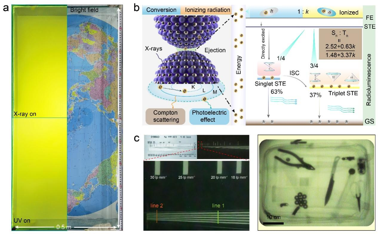 研究人员从激发态发光机制上实现了三重态激子的“亮态”利用,提出了“量子点交换不变性”概念,揭示了无序组装在光学输出稳定性上的结构优势,为大面积量子点玻璃态闪烁体的可制造性提供理论依据。该成果不仅在闪烁材料设计、激子调控与高性能辐射成像器件开发方面具有重要科学价值,也为大面积高分辨X射线成像发展提供了材料支撑和技术路径。