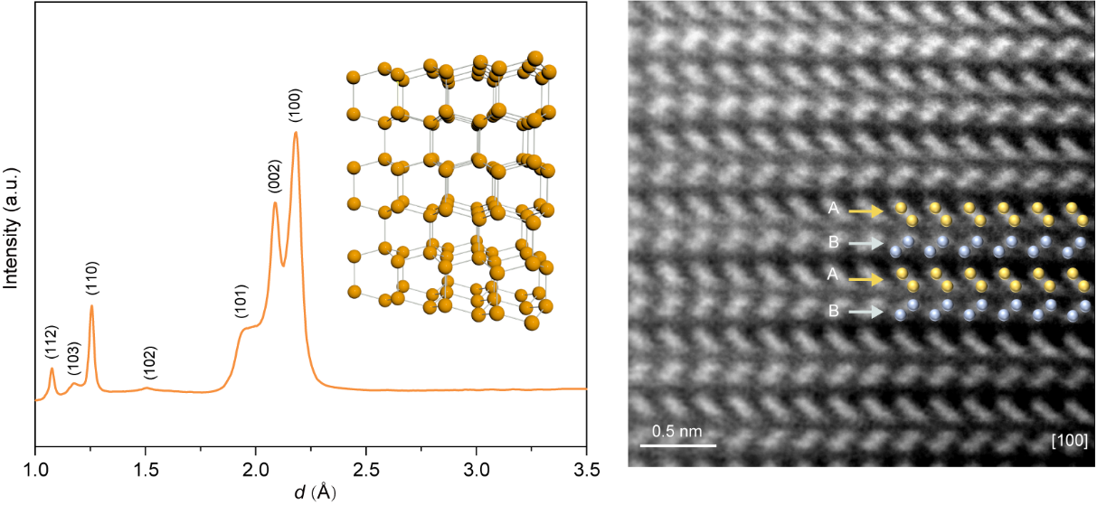 合成的六方金刚石的晶体结构、X射线衍射以及原子级分辨图像