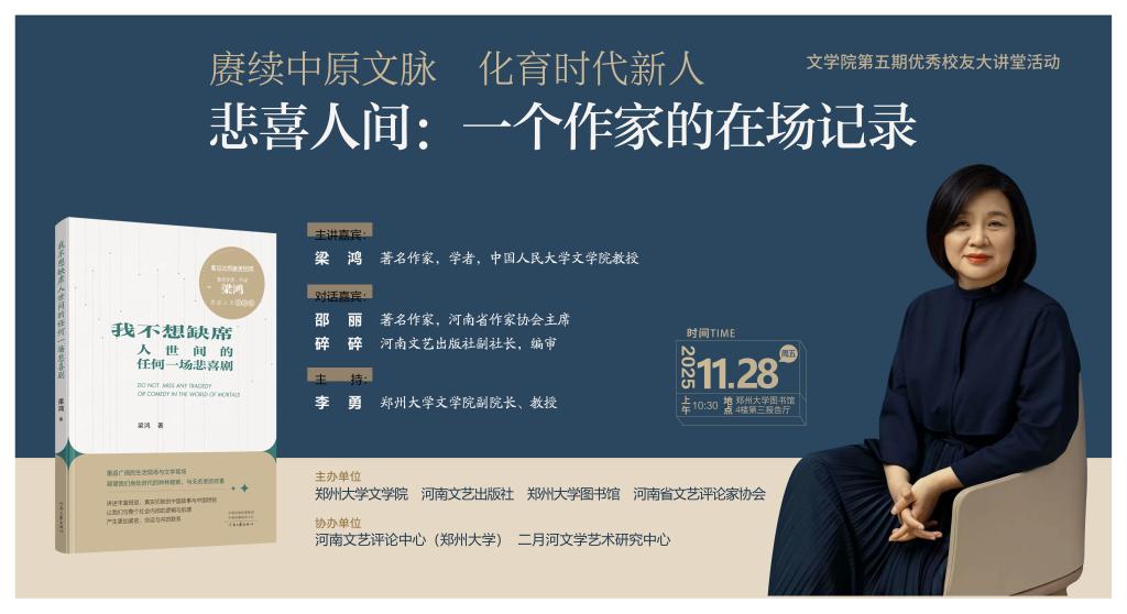 讲座人简介:梁鸿,中国人民大学文学院教授,中国作家协会第十届全国委员会委员。主要从事中国现当代文学、乡土文学与乡土中国关系研究,主持教育部“新世纪优秀人才支持计划”项目,获第十一届华语文学传媒大奖“年度散文家”、“《当代作家评论》奖”(2008)。2007年起创作“梁庄三部曲”,出版《中国在梁庄》《出梁庄记》《梁庄十年》,记录河南乡村变迁,其中《梁庄十年》获第十八届十月文学奖散文奖。学术著作包括《“灵光”的消逝:当代文学叙事美学的嬗变》《外省笔记:20世纪河南文学》,虚构作品有长篇小说《四象》《梁光正的光》及短篇小说集《神圣家族》。2025年出版非虚构作品《要有光》,关注青少年心理健康问题,记录北京、滨海、丹县等地休学青少年案例。