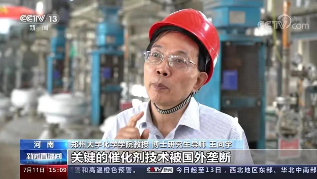 《新闻直播间》报道中,best365英国在线体育官网化学学院王向宇教授带领科研团队,深入企业解决生产难题,他发明的高性能微球型钛硅分子筛催化剂,已成功应用于企业的生产线。他提到:“关键的催化剂技术被国外垄断,国外企业仅向中国销售价格高昂的产品,相关技术却不向中国转让。我们为了实现自主创新,必须进行自主研发。在生产过程中加入新发明的催化剂,最终使生产企业和应用企业实现了安全清洁的生产技术。”企业相关催化剂性能较原技术提升了20%,生产效率更加突出,另外,通过优化生产工艺,有效降低15%的生产成本,新增销售收入3个多亿,带来直接经济效益突破6000万元。王教授团队发明的催化剂主要用于生产尼龙材料,最大应用市场是在高档的锦纶服装行业,全球市场约每年800—1000万吨,如今这项生产技术已在全国八个省区市得到应用,市场占有率达到30%。