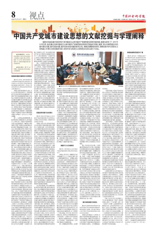 刘吕红:我们这一课题在研究过程中主要产生了两方面的研究成果:一是发表跟课题研究紧密相关的学术论文。课题组负责人和主要成员在《马克思主义研究》《理论与改革》《中州学刊》《西北师大学报(社会科学版)》《中国社会科学报》等报刊上发表了40余篇学术论文,部分论文被中国人民大学报刊复印资料全文转载。代表性成果有:《时代·性质·方法:马克思、恩格斯关于城市论述的三维阐释》《中国共产党领导城市工作的百年历程、现实审视及基本经验》《中国共产党城市党建的百年思想》《习近平关于城市建设重要论述的理论来源、思想内涵与时代价值》《中国共产党领导国家中心城市建设的进程、逻辑及经验》等,主要从理论渊源、历史演进、思想概貌和现实进路等多维度对新中国成立以来中国共产党城市建设思想进行全景再现式、纵横交错式、精耕细作式研究。