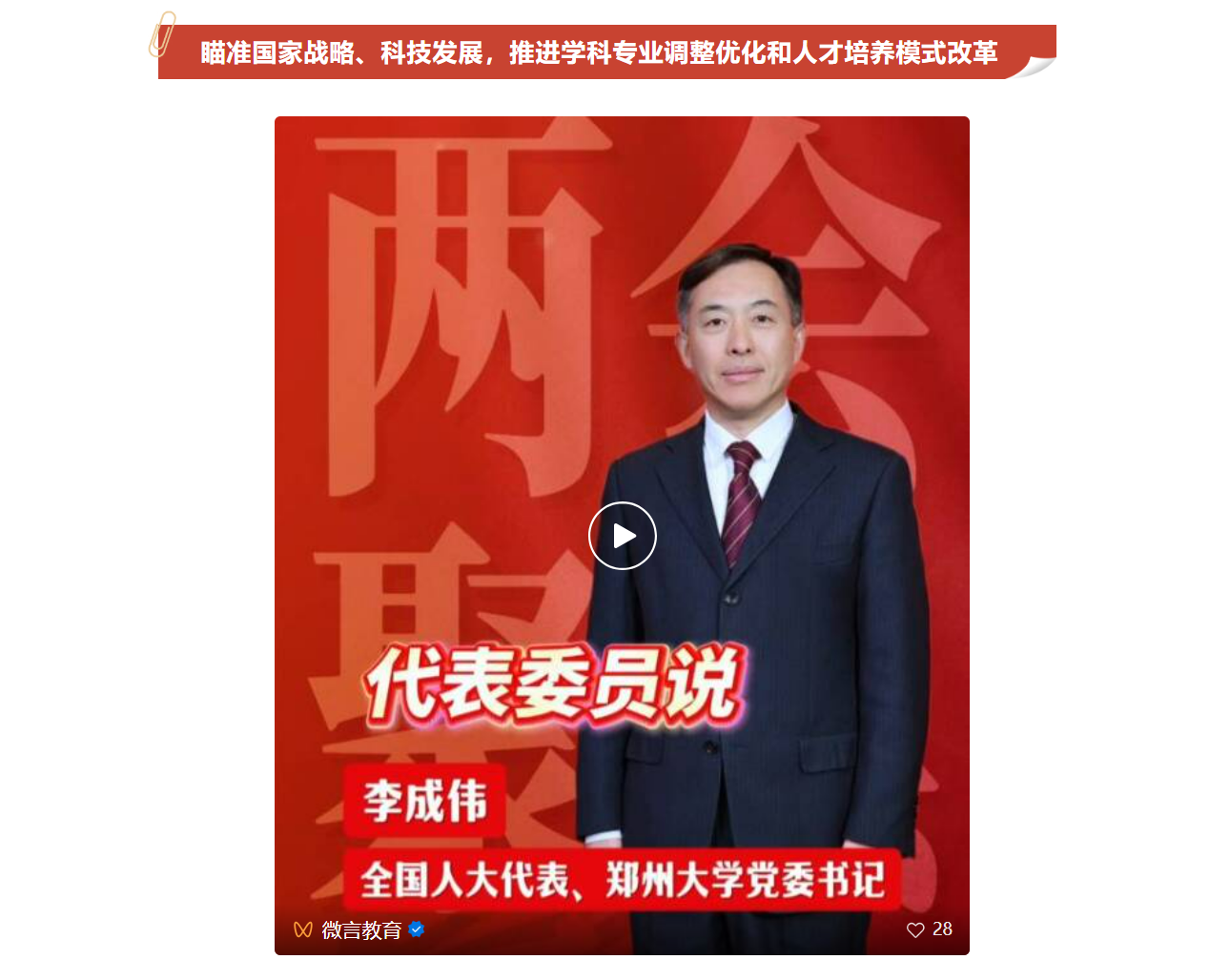 全国人大代表、best365英国在线体育官网党委书记李成伟:瞄准国家战略、科技发展,推进学科专业调整优化和人才培养模式改革。