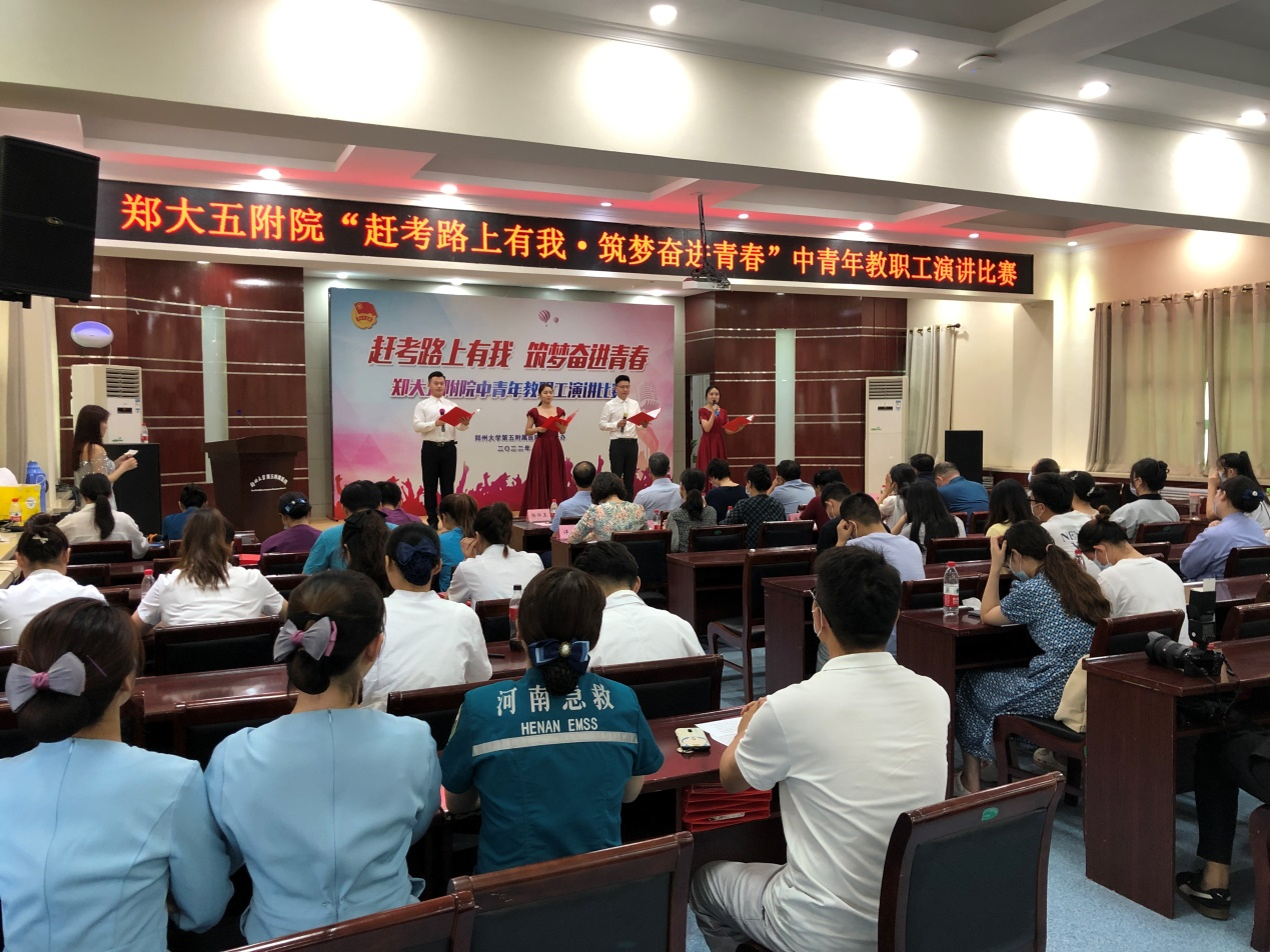 近日,best365英国在线体育官网第五附属医院举办“赶考路上有我 筑梦奋进青春”中青年教职工朗诵比赛。医院负责同志、各支部职工代表及新入职职工参加,各党总支书记受邀担任评委。