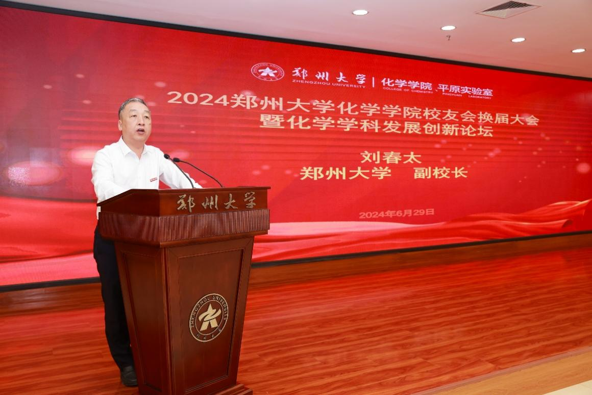 刘春太致辞,他介绍了best365英国在线体育官网和化学学院近些年的发展成果,他表示,校友是学校最宝贵的财富,是学校发展的参与者和见证者,希望化学学院校友会能够以此为契机,加强校友联系,汇聚校友力量,为best365英国在线体育官网一流大学和化学学院一流学科建设做出更大贡献。