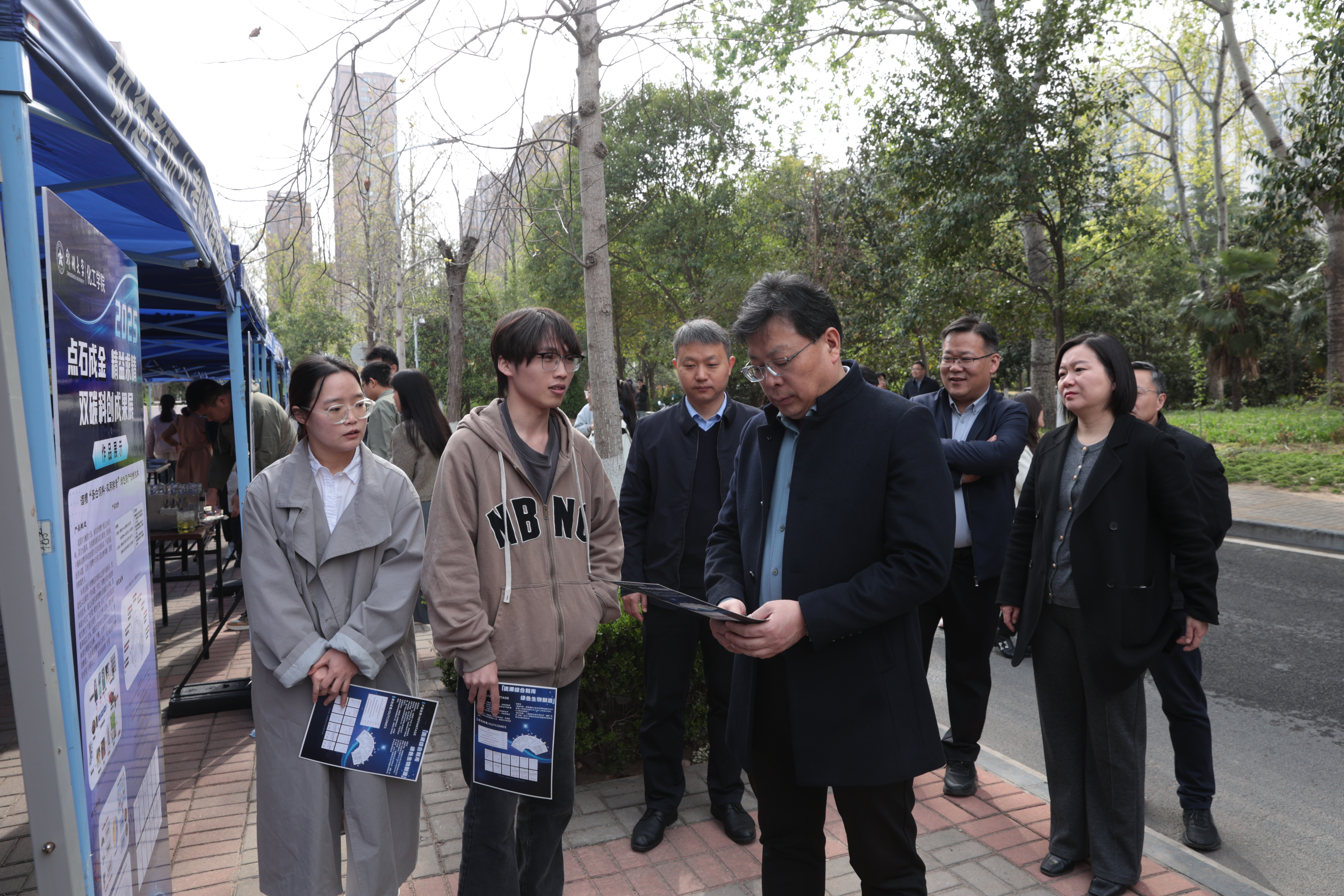 王利国为“双碳”工作室揭牌。他充分肯定了过去一年化工学院在科技创新方面取得的进步和成绩,并对本次科技创新项目路演给予高度认可。他表示,要始终以习近平新时代中国特色社会主义思想为指引,坚持“四个面向”,不断推动高水平科技自立自强;要大力弘扬科学家精神,广泛凝聚科技报国力量,激发创新创造活力;要充分发挥学科优势,瞄准关键核心技术,攻克“卡脖子”技术难题,奋力建设科技强国。他强调,广大青年学子要胸怀科技报国、创新为民的远大志向,主动聚焦国家战略重大需求,积极服务地方经济社会发展,坚持严谨求实的科学态度,勇攀科技高峰,夯实创新根基,担当强国使命,为推进中国式现代化建设贡献青春力量。