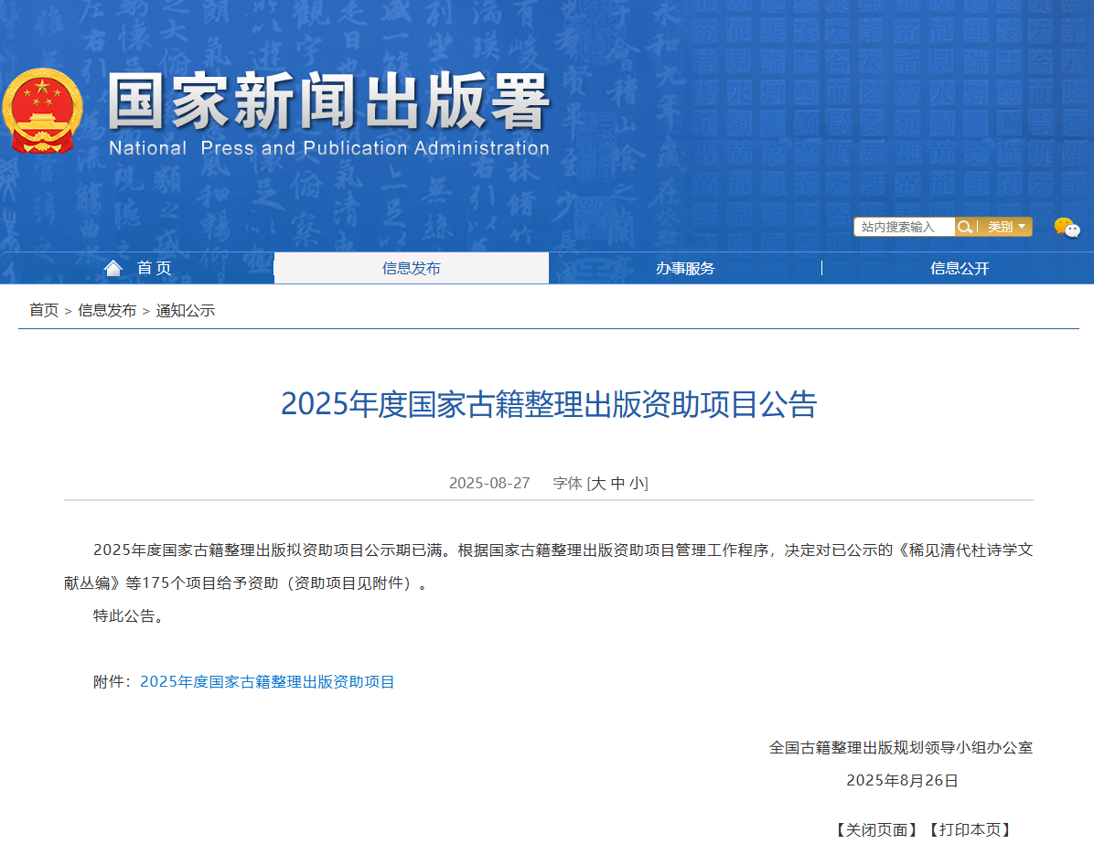 best365英国在线体育官网出版社在2025年度国家古籍整理出版项目中喜获佳绩