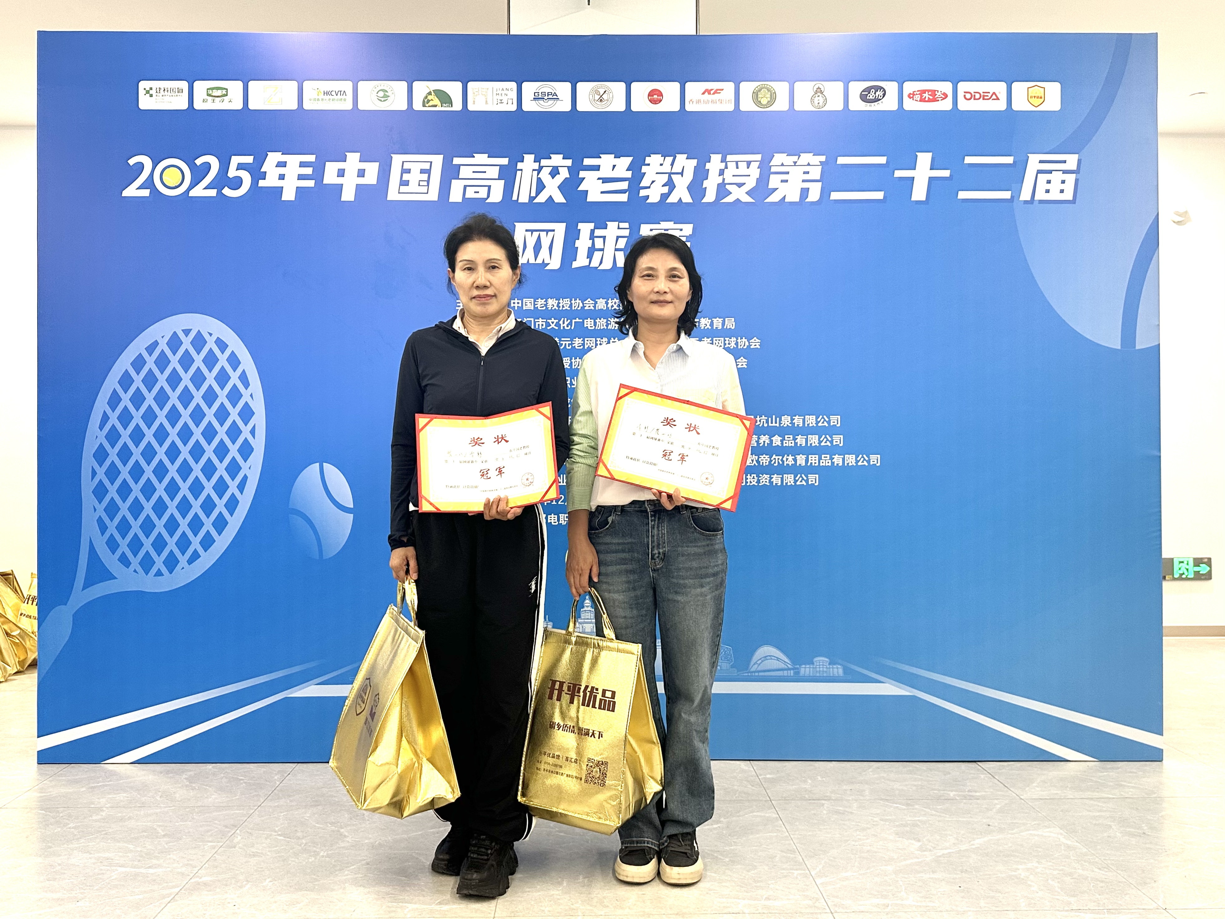 近日,中国高校老教授第二十二届网球赛在广东江门市举行。本届赛事共吸引全国18所高校的180余名运动员参加,设有男子团体、女子双打、混合双打、校长组及特邀嘉宾组等项目。来自北京、黑龙江、广东及香港、澳门特别行政区的老教授选手齐聚侨乡,以球会友,挥拍竞逐。