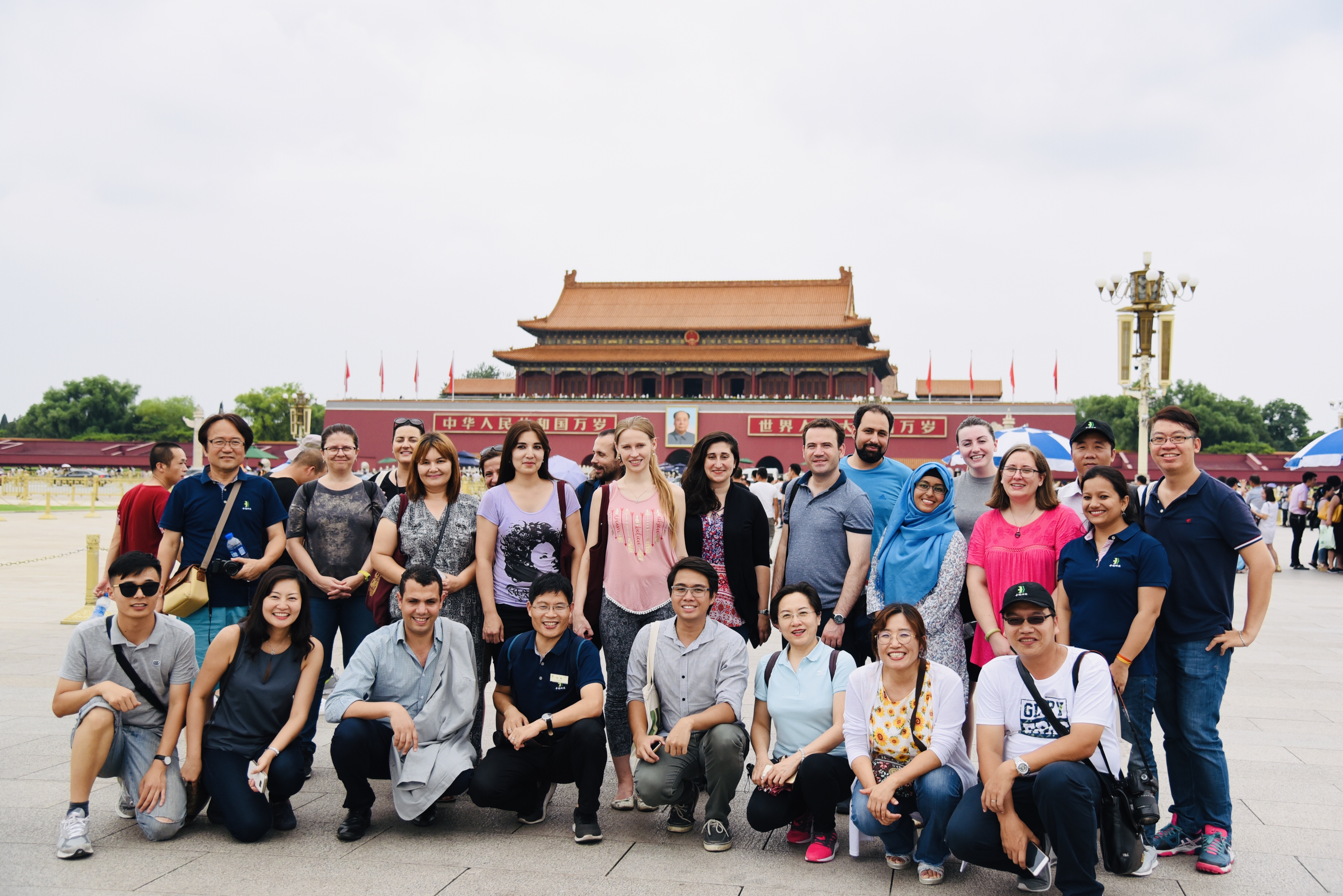 黄卓明和国际学生在一起