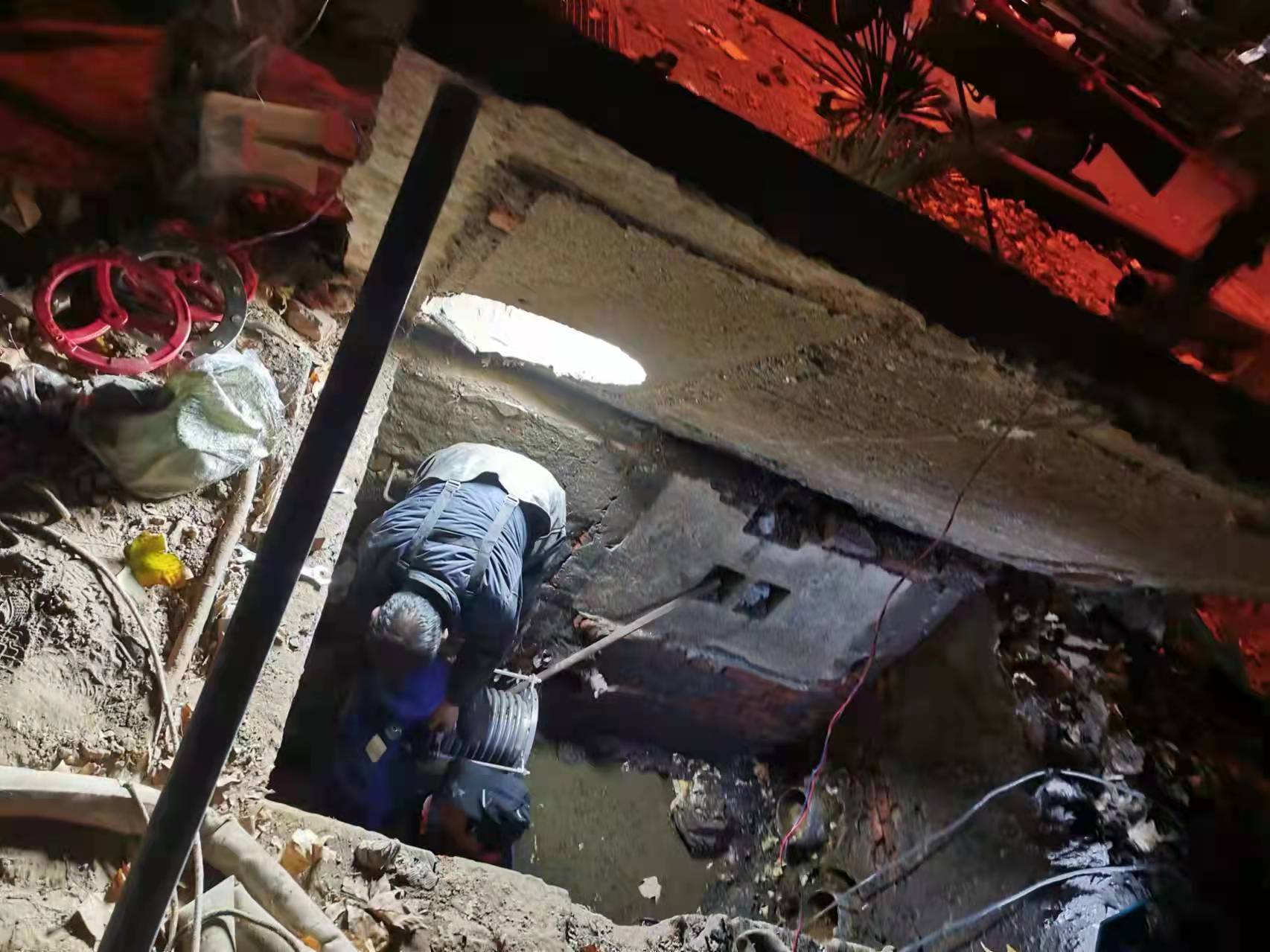 在10月中旬的注水排查过程中,柳园2号楼阀门井内的异常积水现象引起工作人员的重视,他们推测是暖气管道破裂引起的漏水,并立即展开维修。暖气管道排列在地下管道沟中,其漏水情况肉眼无法观察,也很难用机器检测,只有维修人员钻进沟中才能进行排查。经过通风后,王猛、刑培育、杨勇等维修人员穿上皮裤,在高一米二的地沟中,猫着腰往深处前行。厕所排出的污水让沟内的空气格外混浊,水位最深处已经漫过膝盖,昏暗的地沟中,头灯成为指引前行方向唯一的光源。在地沟中弯腰前行了80多米后,他们找到了管道漏水点,最终抢修完毕。排查过程中,许多宿舍楼的外部管道出现爆管情况。工作人员每天都要进行巡查,一旦发现隐患,第一时间展开挖沟、停水、控管、换管等一系列维修工作。例如,在修补柳园17号楼前的管道时,他们从下午两点一直忙碌到凌晨一点多,不分昼夜地抢修了11个小时,对坏损的管道和阀门进行更换,为后期供暖又添一道保障。