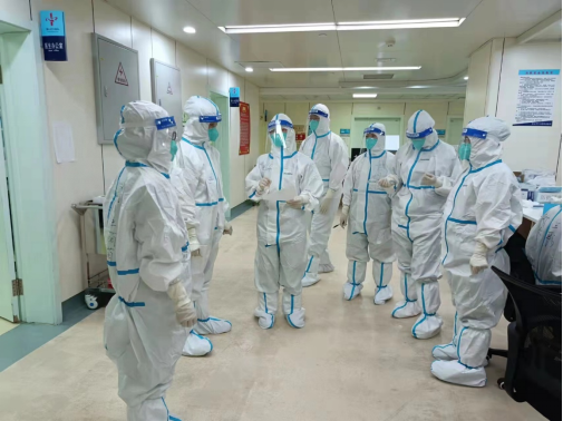 3月16日,在医疗队召开临时党支部抵达驻地后的第一次会议上,卜克同志要求支部每名党员在面对复杂严峻的疫情,一定要保持高昂斗志,精诚团结、克服困难,充分发挥共产党员先锋模范作用,用担当有为擦亮党旗党徽。临时党支部成为best365英国在线体育官网五附院支援吉林医疗队的“主心骨”,成为这场抗疫战斗的“红色屏障”和“战斗堡垒”。自进驻定点医院以来,临时党支部卜克书记、杨楠副书记和感控负责人夏振华同志身先士卒、冲锋在前,经常“白加黑”“连轴转”,除了正常的病区管理、查房、参加院方交班会,还要关注每一名队员的思想动态,做好队员的心理工作,协调解决队员生活上的困难。