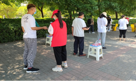 第二天上午,机关党员志愿者们穿上了印有“机关党委志愿者”的红马甲开始行动,奔赴和奋斗在学校每个战“疫”最需要的地方。学生餐厅取餐点、核酸检测点等都出现了机关党员志愿者的身影。他们身着红马甲,分组在柳园、荷园、菊园、松园和图书馆等地,投入在最前沿,与楼长们并肩作战。他们协助维持核酸检测秩序,耐心细致地做好学生们的思想引导,帮助协调解决许多具体难题。