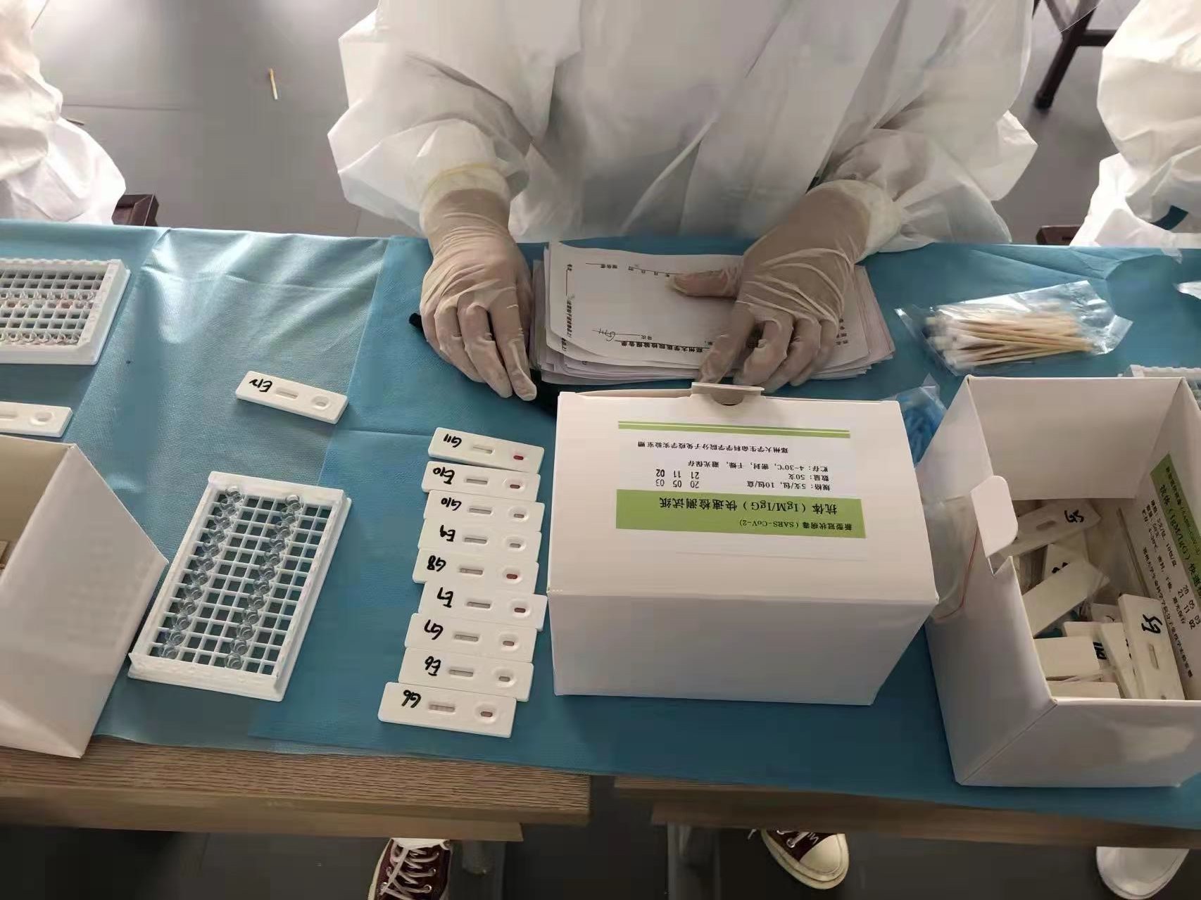 2020年2月初期,研究所研制出一款新冠快速检测试纸,能在1-3分钟完成新冠的检测,使用方便、成本低廉。best365英国在线体育官网、河南农业大学以及国内很多院校都曾使用该产品来保证师生的顺利复学。数月后,研究所共研制出3种检测试纸:IgG、IgM、IgM/IgG抗体检测试纸和5种核酸检测方法:普通PCR核酸扩增、Real time-PCR、双引物Real time-PCR、 LAMP-CRP 核酸检测试纸、RAA-CRP核酸检测试纸。这些试纸基本上都是无偿捐赠给高校、市地政府部门、医院、上市公司等众多单位,累计已有二十余万份,在对疫情的诊断与治疗、实时监控等大规模行动中作出了重要贡献。