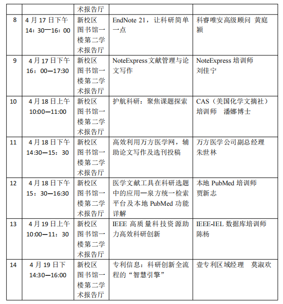 培训地点:新校区图书馆一楼第二学术报告厅