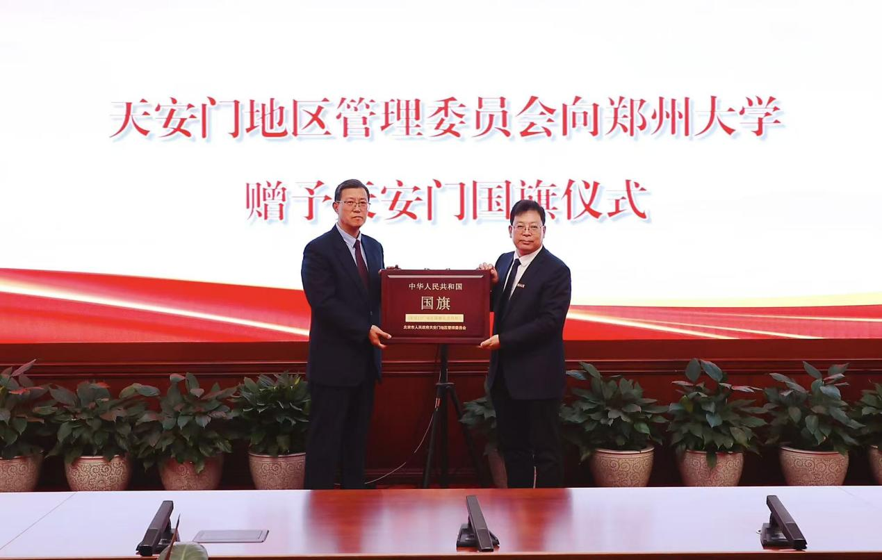 10月31日,北京市人民政府天安门地区管理委员会赠予天安门国旗仪式在北京举行。双方共同签署《国旗赠予协议》。获赠的国旗旗长5米、高3.3米,编号为2018-0091号,曾于2018年6月18日在天安门广场升起,该日期正是学校办学90周年纪念日,也是被确定为best365英国在线体育官网校庆日和校友返校日的纪念日,这对学校而言,承载着无可替代的纪念意义与深厚情感。学校把这面承载特殊意义的国旗郑重珍藏于档案与校史馆,使其成为传承红色基因的永恒载体和象征。